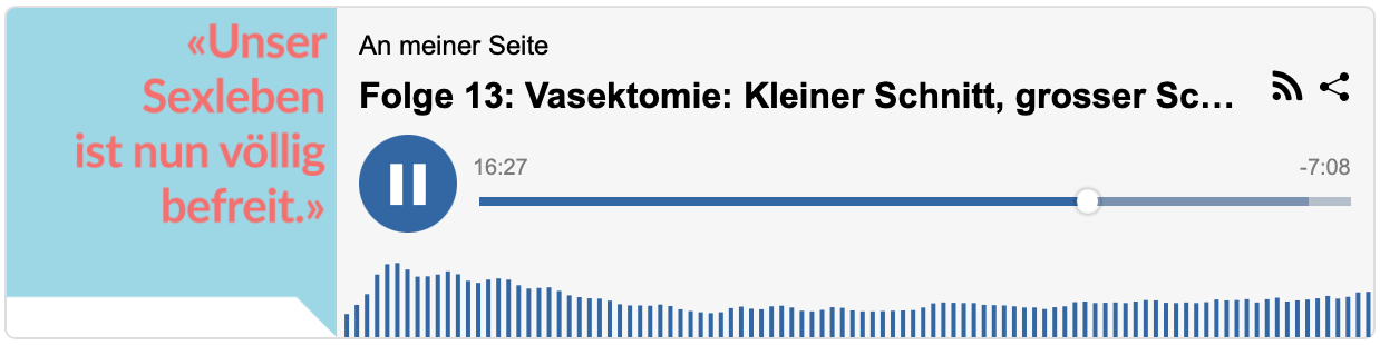 Wenn Sie mehr über die Vasektomie erfahren möchten und die Episode Nr. 13 mit dem Titel «Vasektomie: Kleiner Schnitt, grosser Schritt» hören und die Informationen nachlesen möchten, klicken Sie bitte hier.